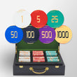 - Case: Choose from a range of premium options, including a sleek Silver Aluminum case, a bold Black Aluminum case, a rich Mahogany case, or a sophisticated High Gloss case. Each is crafted for durability and designed to securely store and transport your poker set, allowing you to carry your chips in style.