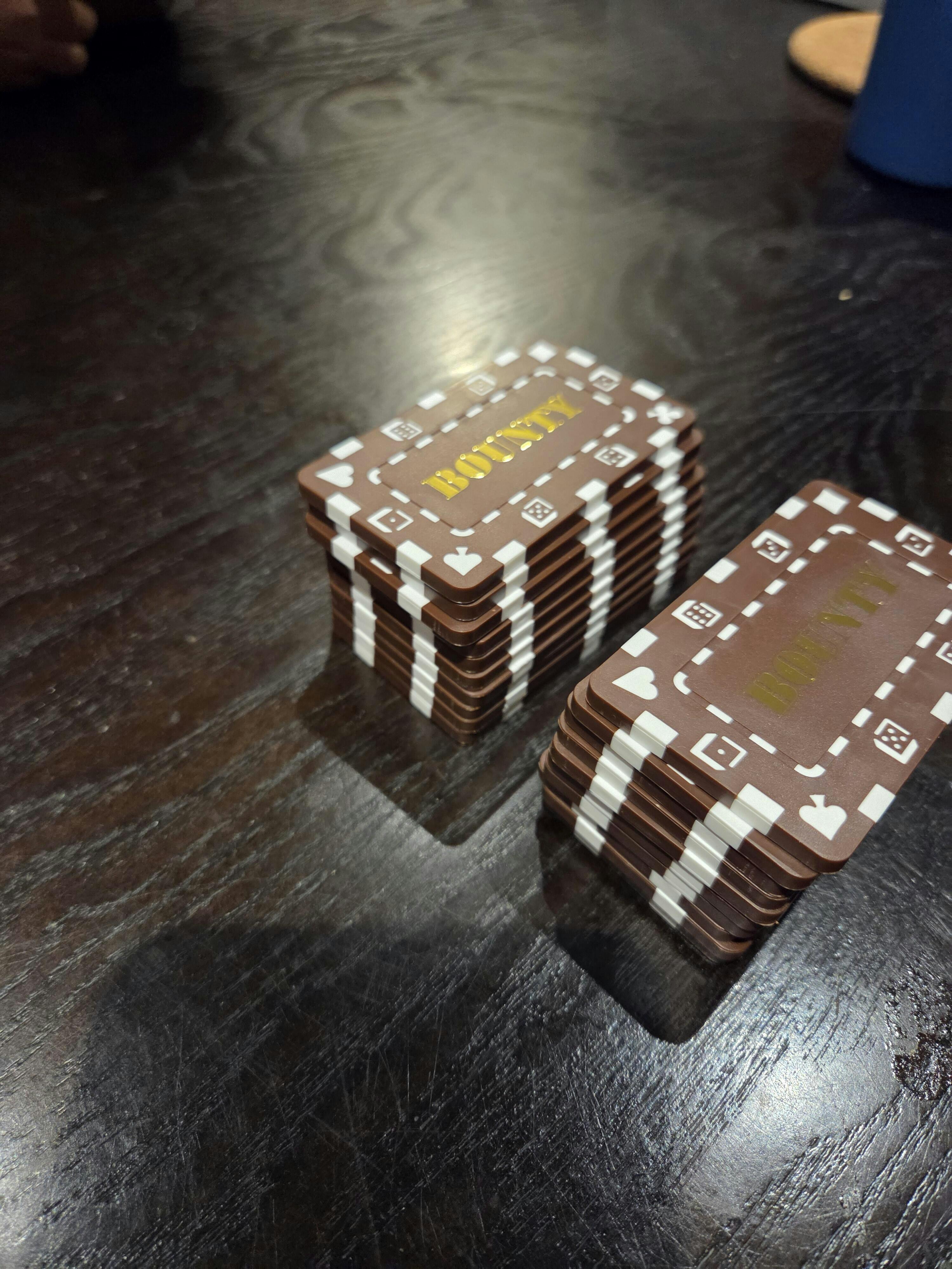 Introducing our 5-piece set of brown rectangular poker plaques. Traditionally used for high-denomination values, these plaques add a touch of sophistication to your home tournaments. Popularized by 'Casino Royale', they're heavier than standard chips, measuring 2-11/16" x 1-3/4" and weighing 33g each.